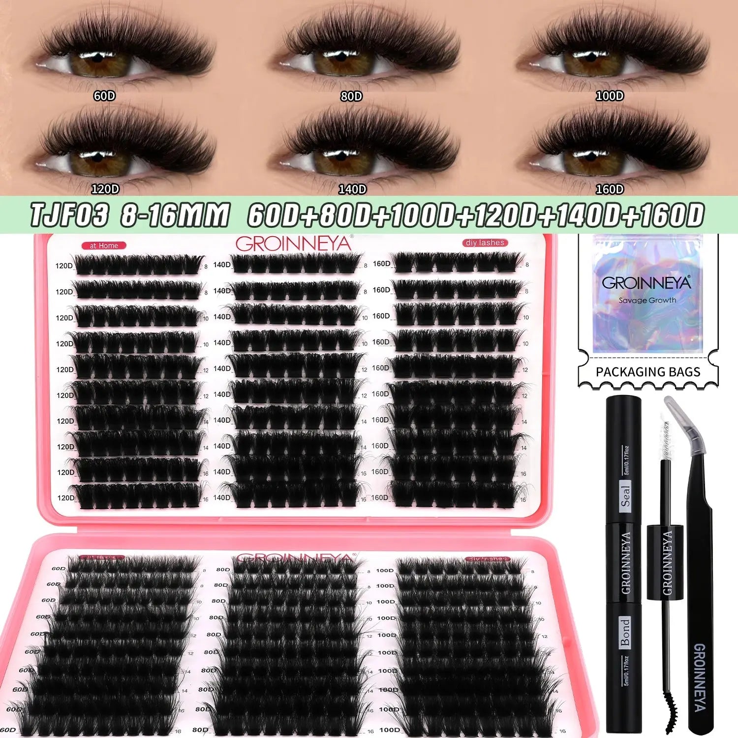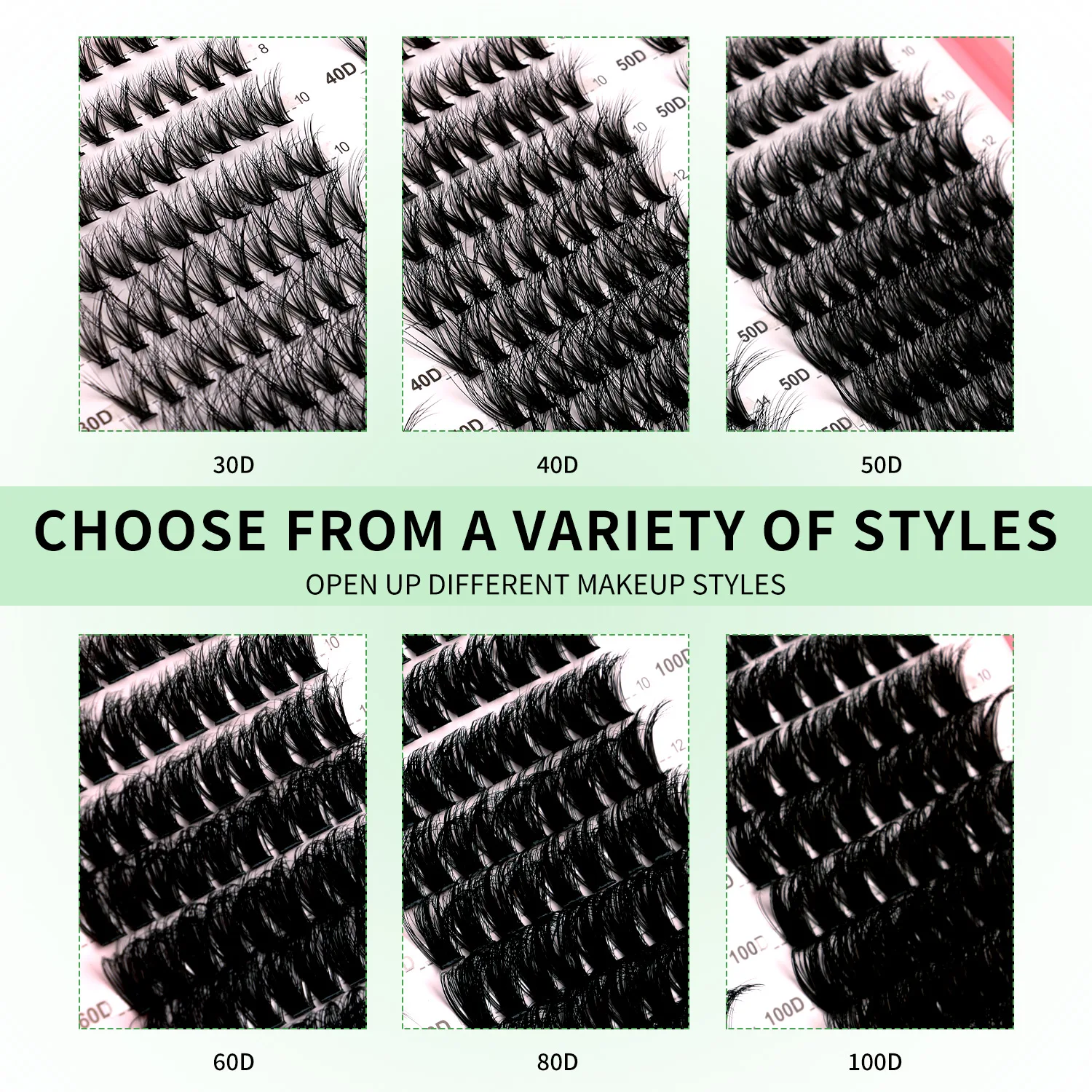 The DIY Lash Clusters Kit is a complete lash extension set designed for effortless, salon-quality results at home. luxury box, Featuring lightweight lash clusters in multiple lengths, a dual-ended Bond & Seal for long-lasting hold, and precision tweezers for flawless application. Formulated with a fast-drying, hypoallergenic formula, it bonds securely to your natural lashes in seconds while resisting smudging, sweating, and even tears,this kit empowers you to create customized looks with ease.