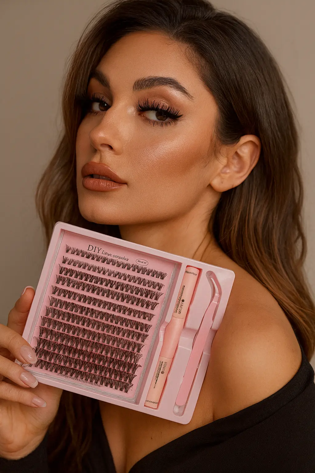 The DIY Eyelash Extension Kit brings salon-quality beauty to your fingertips. Crafted with premium synthetic fibers, the lightweight lash clusters are designed for a natural yet glamorous look. Complete with bond, seal, and applicator tool, the kit embodies elegance and convenience. Perfect for enhancing your everyday style or elevating a special occasion.